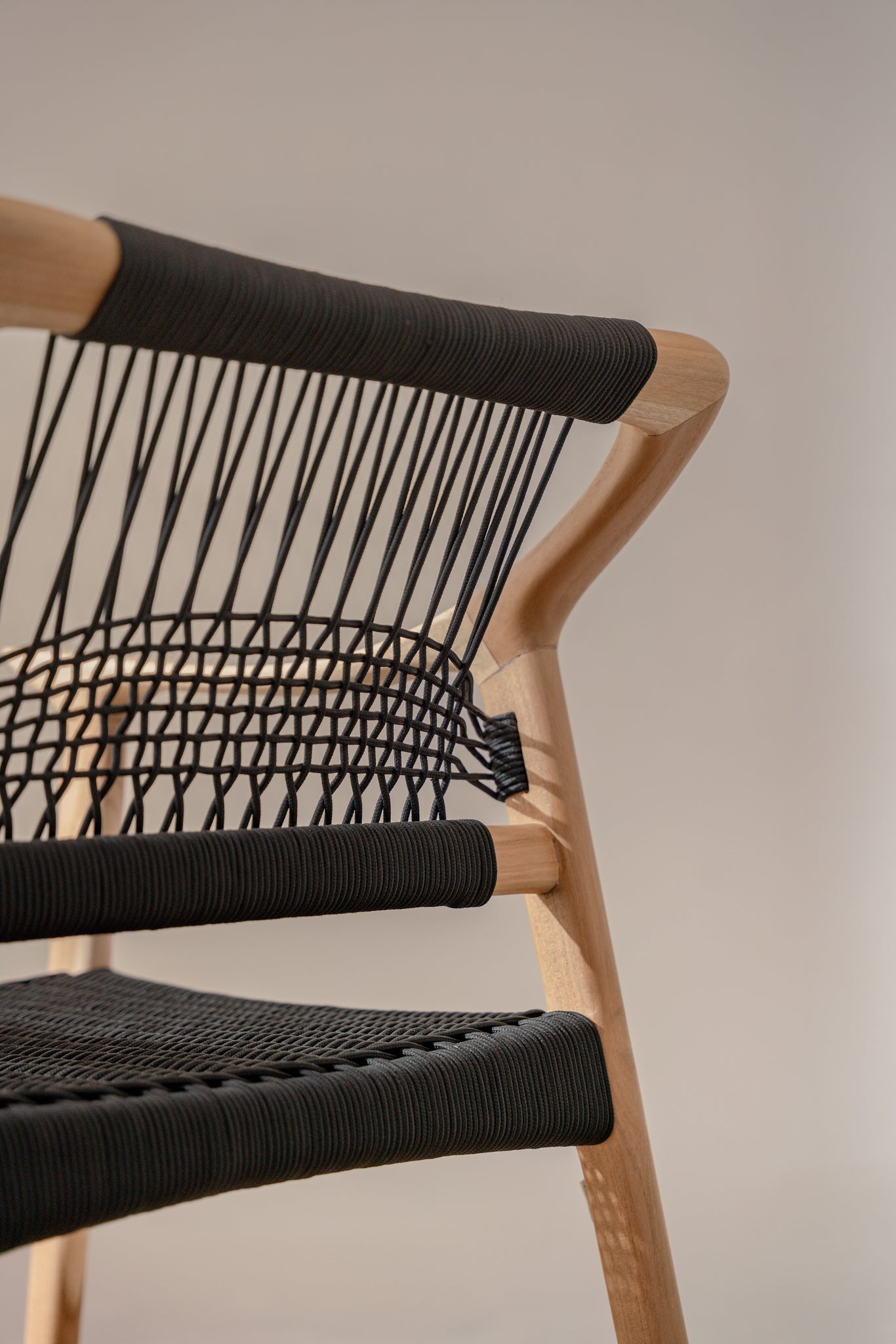 Designed for long, slow dinners, this piece balances the organic warmth of sustainably sourced teak with the modern, tactile edge of hand-woven black rope. Each chair is a testament to the skill of Indonesian artisans, offering a "wabi-sabi" charm that brings life to any space.